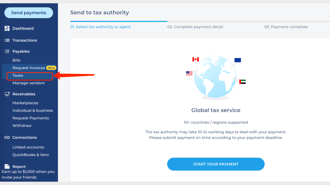 Step 1: In your PingPong account, click “To tax authority” under SEND tab.